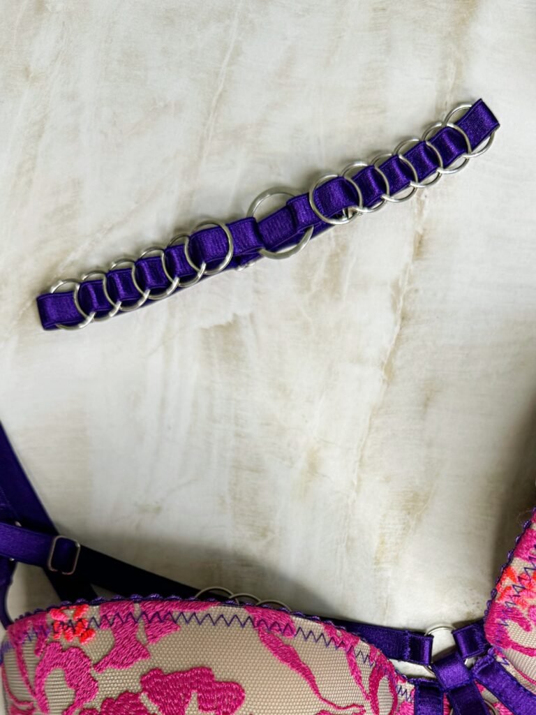 Complete your lingerie look with this bold purple choker, featuring a series of metallic rings for a striking, modern edge.
